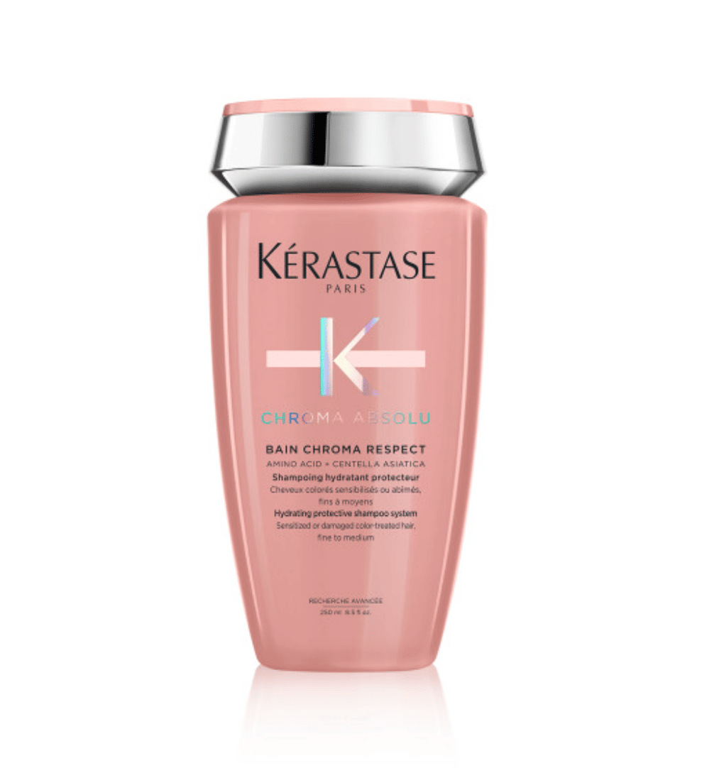 Kérastase Bain Chroma Respect er en skånsomt fuktighetsgivende, beskyttende sjampo for alle typer sensibilisert eller skadet, fargebehandlet hår, hovedsakelig tilpasset tynt til middels tykt hår. Denne lyserosa, kremaktige gelkonsistensen, beriket med en kombinasjon av aminosyre og Centella Asiatica, fukter håret samtidig som den styrker fibrene for å beskytte fargen mot å avta eller falme. Fargen blir frisket opp med 74 % mer skinnende glans*. 92% av fargens intensitet er bevart etter 6 uker**. *INSTRUMENTELL TEST **INSTRUMENTELL TEST: BAIN CHROMA RESPECT FONDANT CICA CHROMA. Sjampoflaskene våre er laget av 95% resirkulert plast.